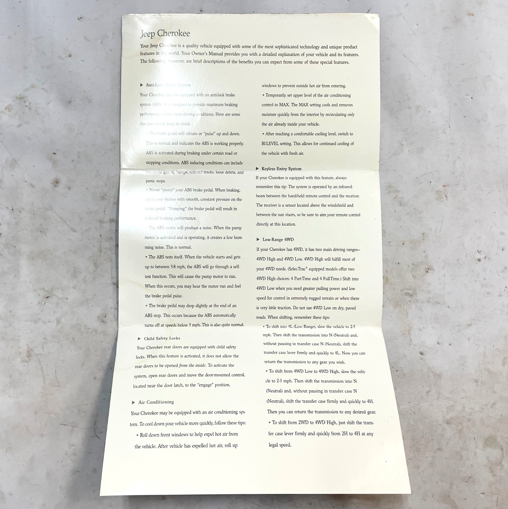 Original Warranty information booklet and "tips from Jeep" guide booklets for 94 Jeep XJ Cherokee.