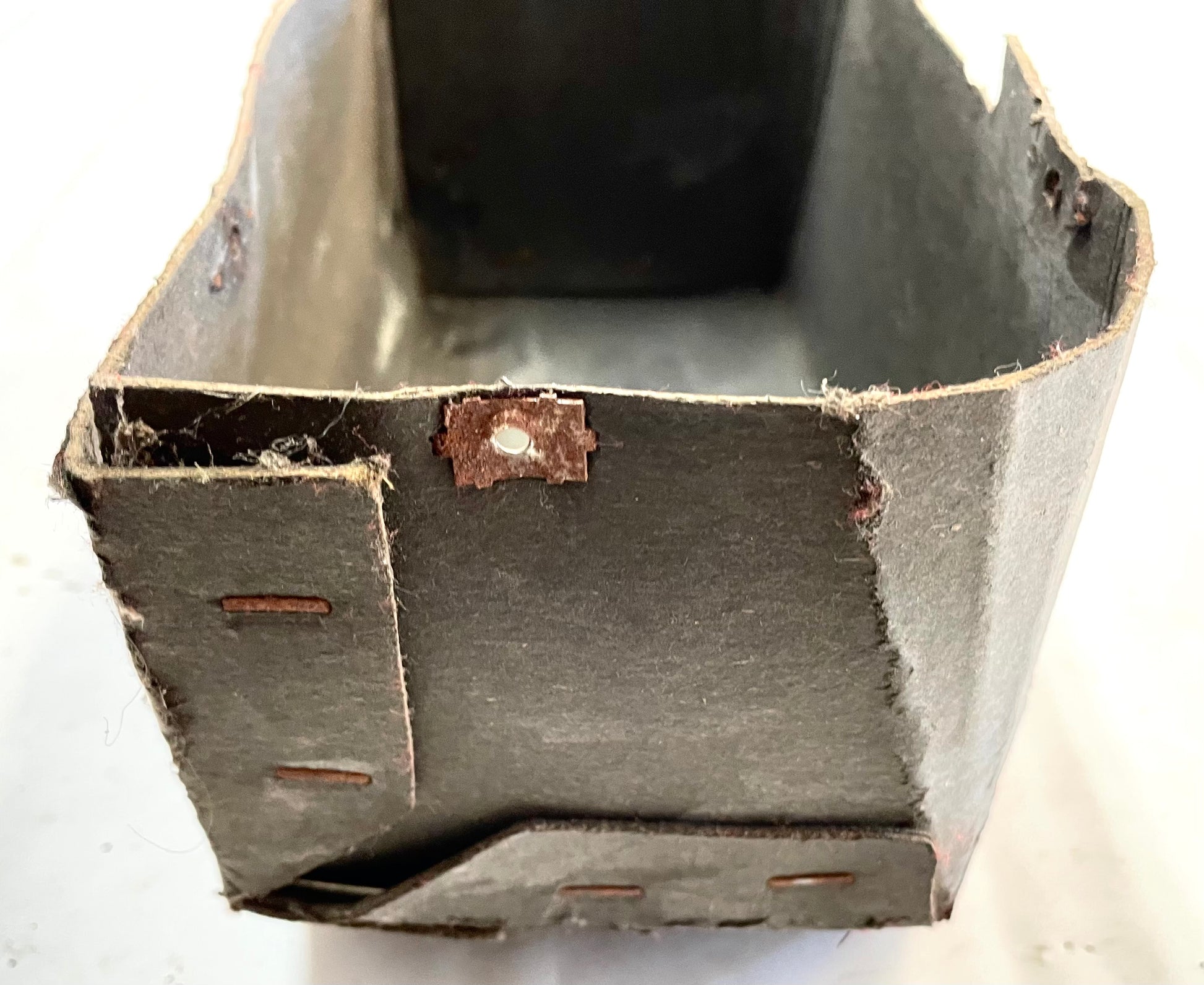 Tiene uno de los clips de metal donde va el tornillo roto y un poco áspero cerca del área del pestillo.