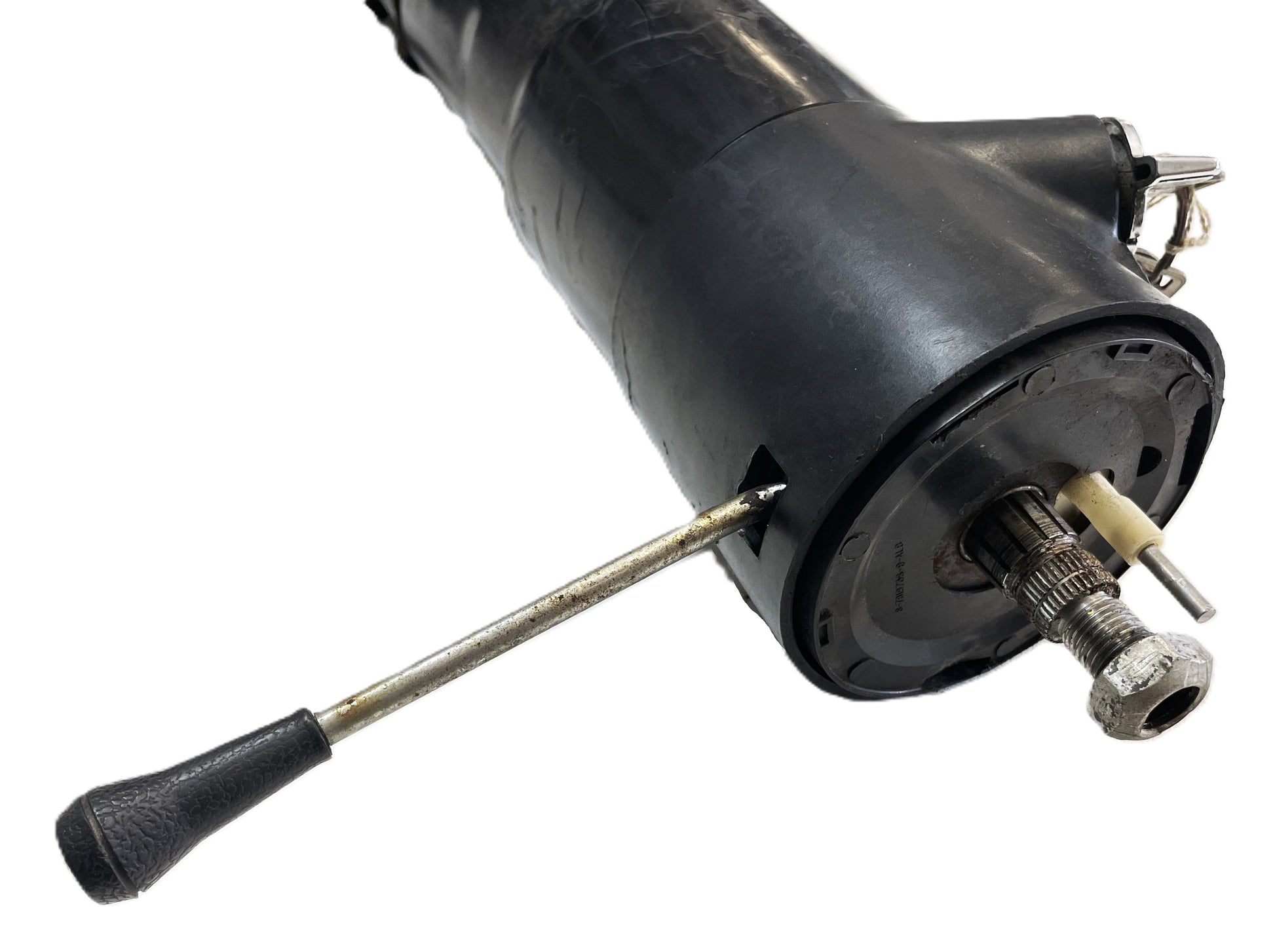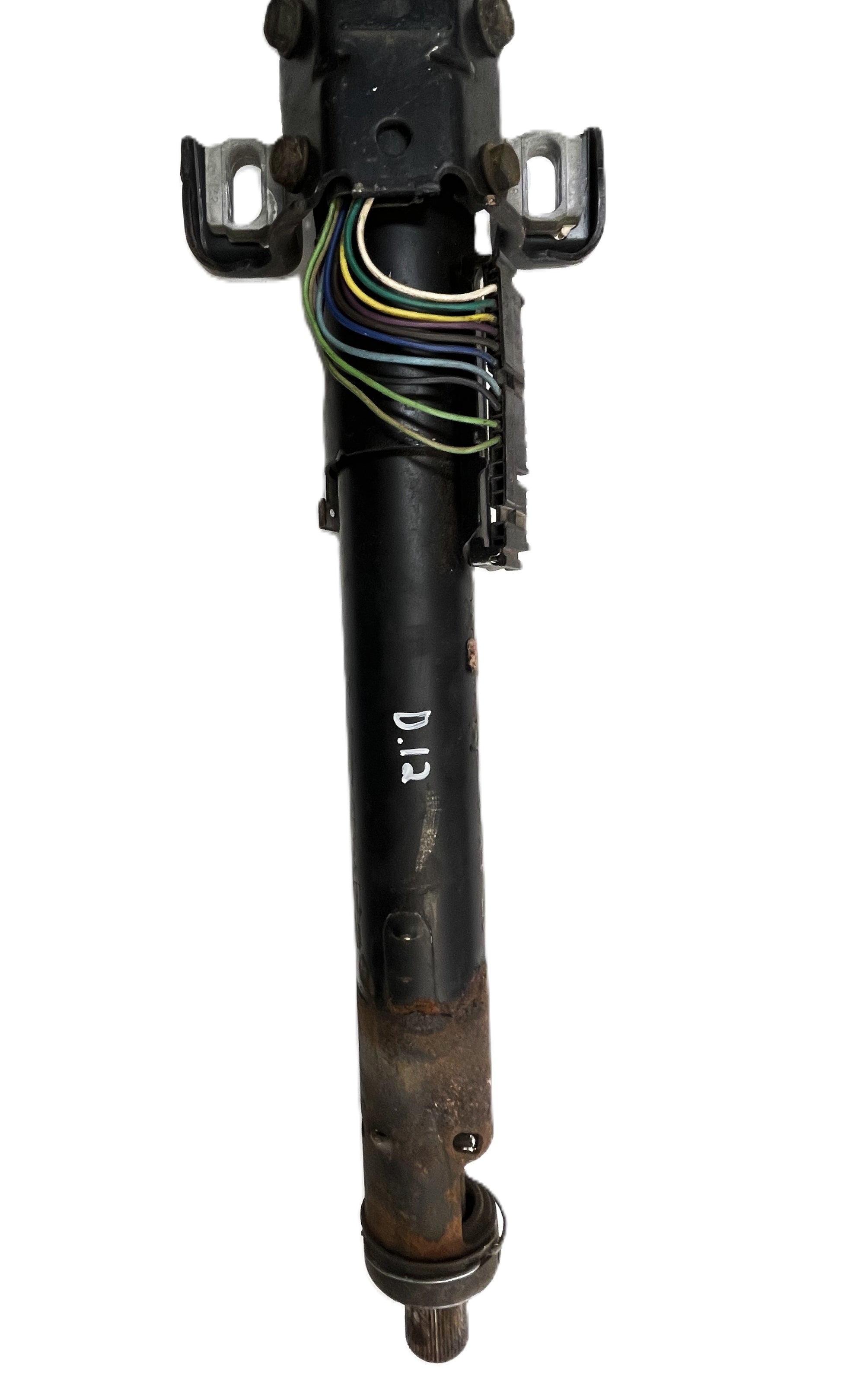 Good complete working-condition. One crack in lower plastic trim and some deep scratches. Normal scuffs and scratches on the rest of the column. All switches and levers function. Good lower bushing. The wiring and connectors look great. Has original keys.