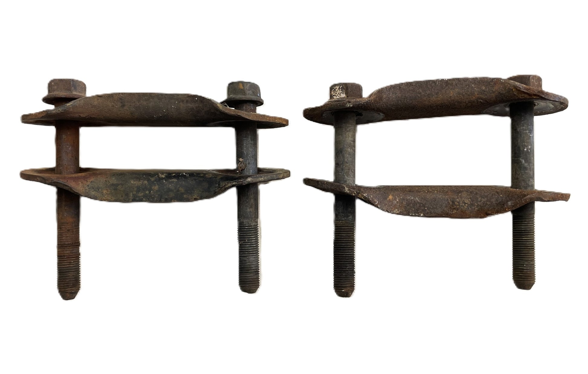 Used pair of stock leaf spring shackles with bolts.