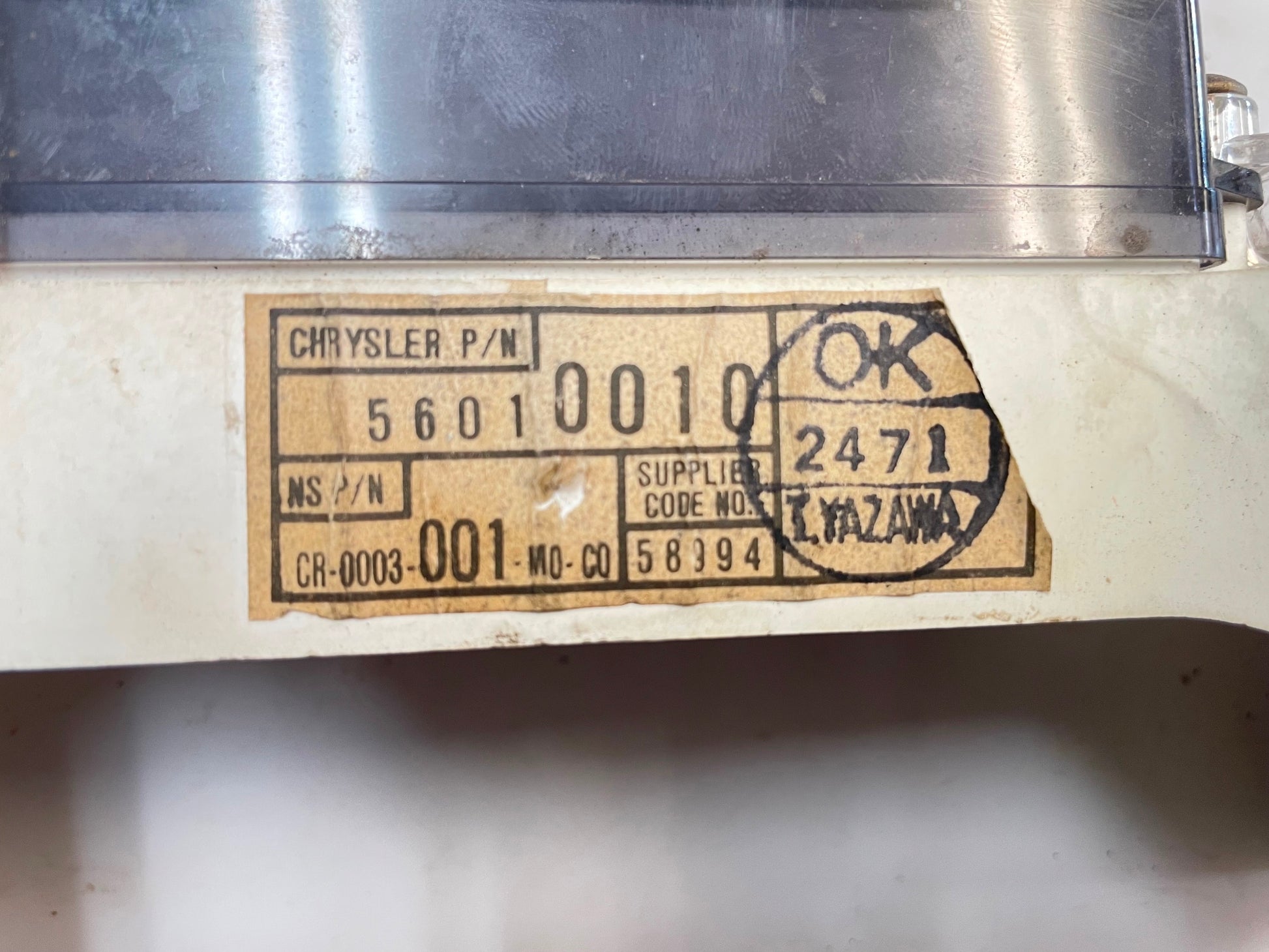 Good used speedometer / tachometer gauge cluster that fits 92-95 Jeep YJ Wrangler.