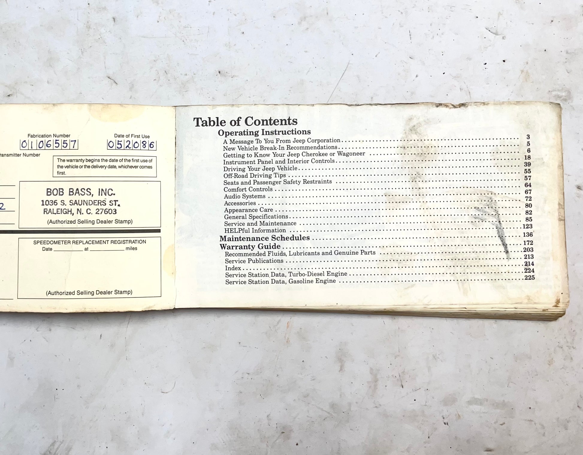 Original owners manual for 86 Jeep XJ Cherokee in good condition.