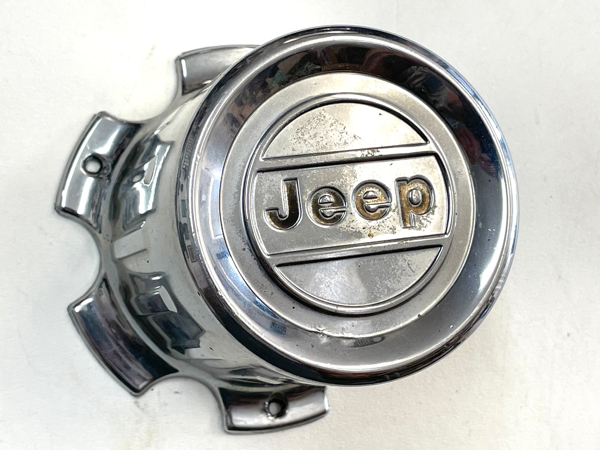 Used factory chrome wheel center cap fits Jeep J10 and Wagoneer.