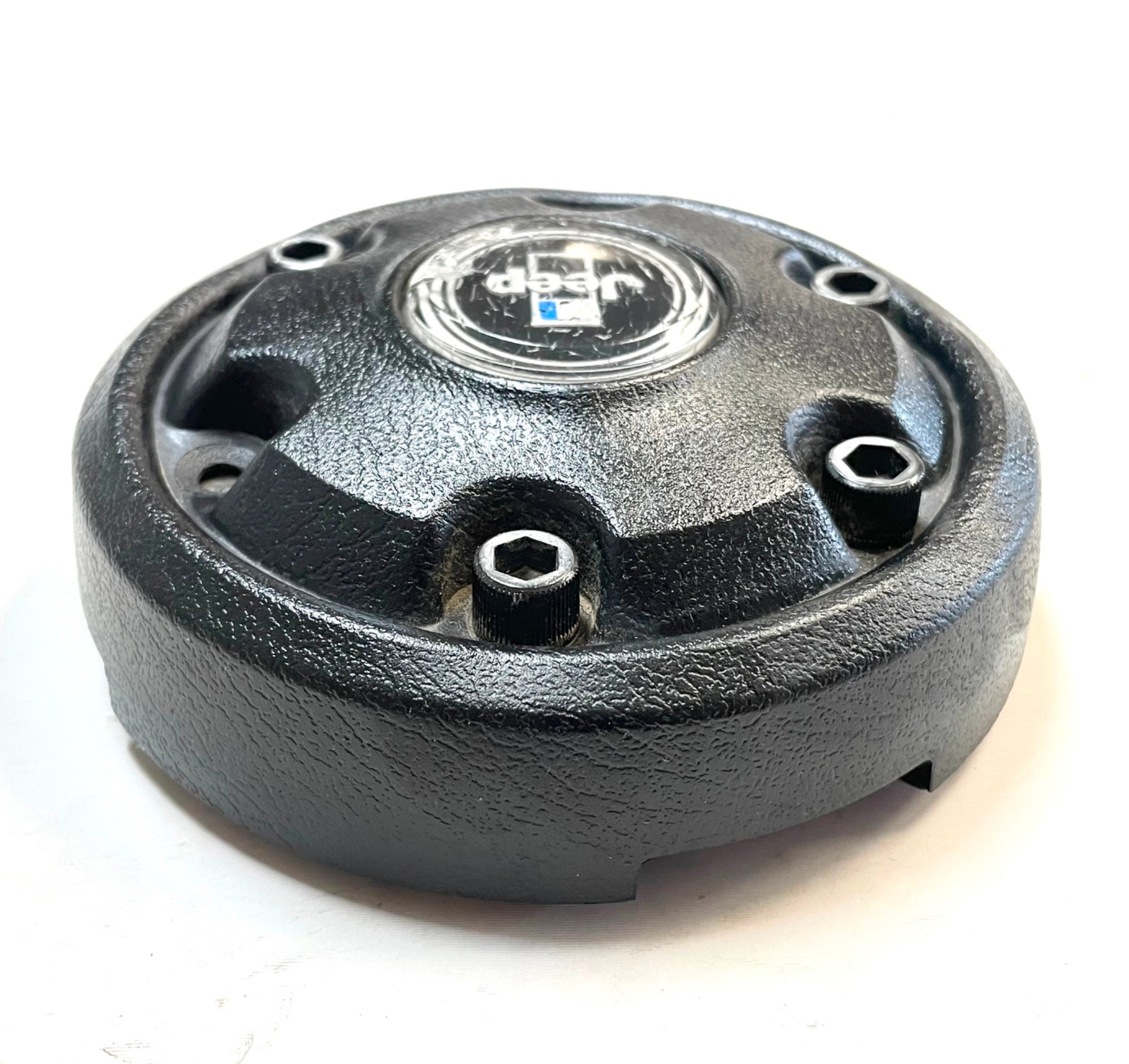 This is a used original Jeep CJ Laredo horn button.